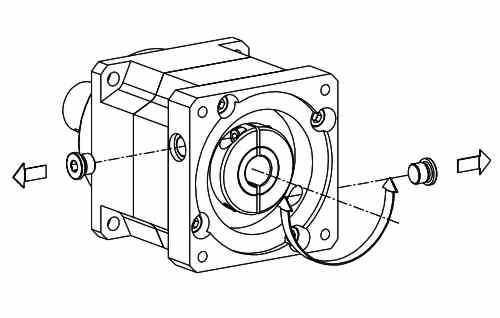 松開行星減速機法蘭中的密封螺釘(或取下塞子)。然后轉(zhuǎn)動夾緊環(huán),使裝置在行星減速機夾緊環(huán)中的螺栓的頭部坐落剛?cè)∠氯雍髽?gòu)成的孔的前面。