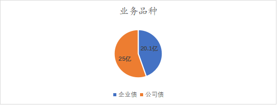 從業(yè)務品種看,全部為標準化債券,分別為企業(yè)債和公司債,其中:企業(yè)債20.1億元、公司債25億元。