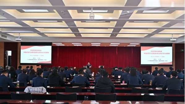 張彪教授以《深刻把握全面推進(jìn)中國式現(xiàn)代化建設(shè)的政治宣言與行動(dòng)綱領(lǐng)》為題,從“深刻領(lǐng)會(huì)中國共產(chǎn)黨二十大召開的重大意義”“準(zhǔn)確把握中國共產(chǎn)黨二十大會(huì)議的精神實(shí)質(zhì)”“深入學(xué)習(xí)貫徹黨的二十大精神為全面推進(jìn)中國式現(xiàn)代化建設(shè)做出國有金融企業(yè)新貢獻(xiàn)”等三個(gè)方面對(duì)黨的二十大精神作了系統(tǒng)解讀和深刻闡釋。與會(huì)人員一致認(rèn)為,張教授的報(bào)告站位高、解讀深、落點(diǎn)實(shí),具有較強(qiáng)的思想深度、理論高度、實(shí)踐力度,對(duì)于集團(tuán)全體黨員干部職工系統(tǒng)全面學(xué)習(xí)、把握、落實(shí)黨的二十大精神具有重要的指導(dǎo)意義和推動(dòng)作用。